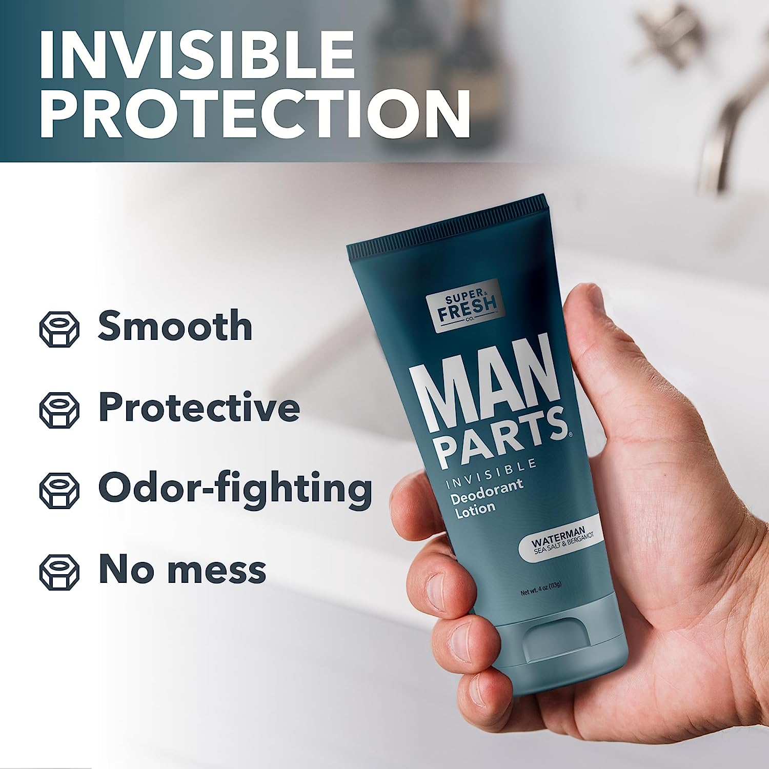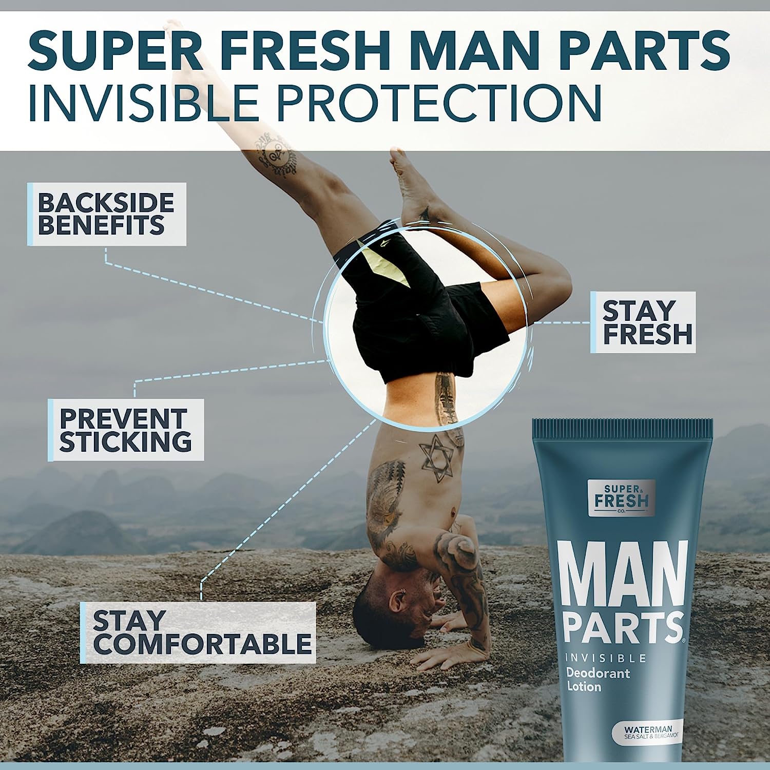 • NO MESS BALL DEODORANT LOTION: Super Fresh Man Parts Clear Protection lotion goes on smooth and keeps things fresh so you don’t have to worry about odor, stickiness, & swamp crotch.