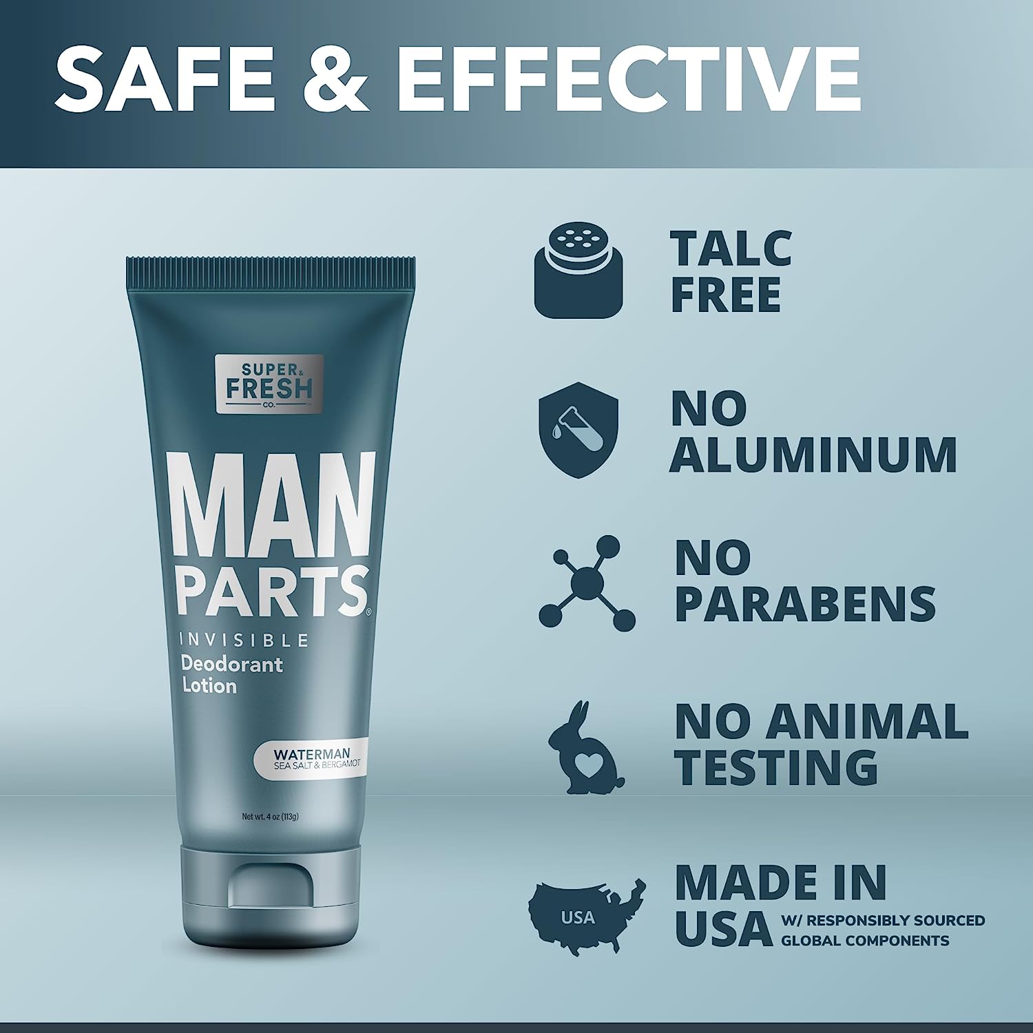 Super Fresh Man Parts Ball Deodorant for Men – Deodorizing Lotion with Aloe – Talc-Free, Paraben-Free, Aluminum-Free, CLEAR PROTECTION – 4 fl oz Tube